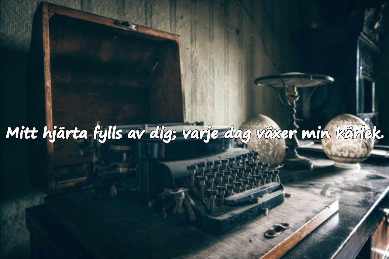 Mitt hjärta fylls av dig; varje dag växer min kärlek.